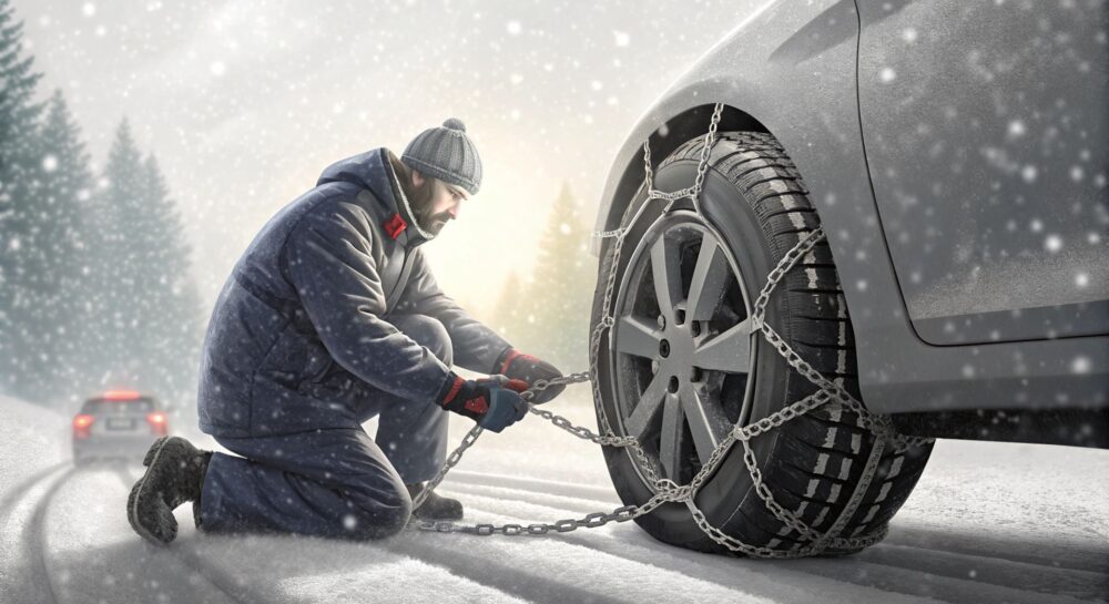 - Практикуйтесь: Установка цепей может быть непростой задачей, особенно на морозе. Потренируйтесь надевать их дома или в безопасном месте, чтобы в экстренной ситуации действовать уверенно.