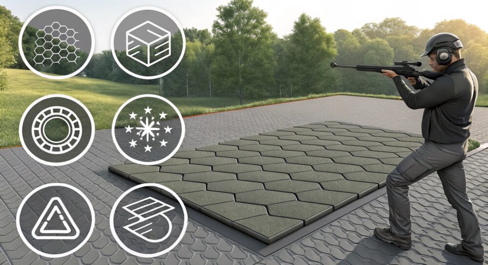 При выборе резиновой плитки для стрельбищ важно обратить внимание на несколько ключевых параметров: