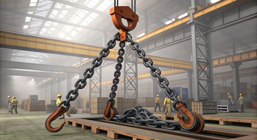 Основные области применения цепного стропа-паука 4СЦ охватывают наиболее требовательные сектора промышленности. Их можно увидеть в портах, где они используются для подъема контейнеров и тяжеловесных грузов; в металлургической промышленности, для перемещения горячих заготовок и готовой продукции; в строительстве, при монтаже крупногабаритных конструкций и оборудования; а также в машиностроении для перемещения тяжелых узлов и агрегатов. Универсальность такого стропа делает его незаменимым там, где требуется безопасный и надежный захват груза с несколькими точками крепления.