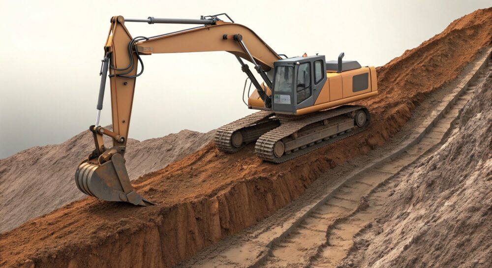 - Уклон: Определите угол наклона склона. Чрезмерный уклон может сделать работу небезопасной или вовсе невозможной. Большинство производителей экскаваторов указывают максимально допустимый угол работы на своих машинах.