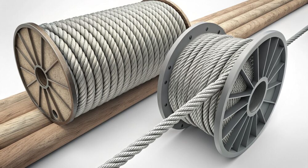 DIN 3055: Стальной канат двойной свивки (6×7), более жесткий, чем 6×19, для определенных применений.