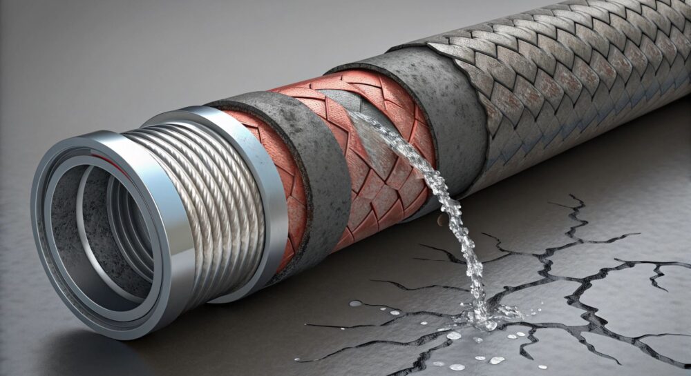 Обратите внимание на микротрещины на внешней оболочке — они часто появляются в зонах постоянного изгиба или трения о металлические конструкции. Такие дефекты — первый сигнал усталости материала. Особенно опасны сквозные трещины, через которые может происходить утечка под давлением. Если при осмотре вы обнаруживаете вздутия («пузыри») на поверхности рукава, это указывает на разрушение армирующего слоя. В таких случаях продолжение эксплуатации недопустимо.