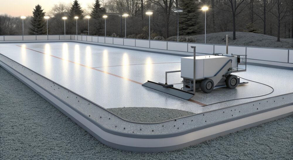 - Оптимальная толщина слоя зависит от нагрузки: для катков достаточно 20–30 мм, для профессиональных арен — до 50 мм. Важно, чтобы слой был равномерным.