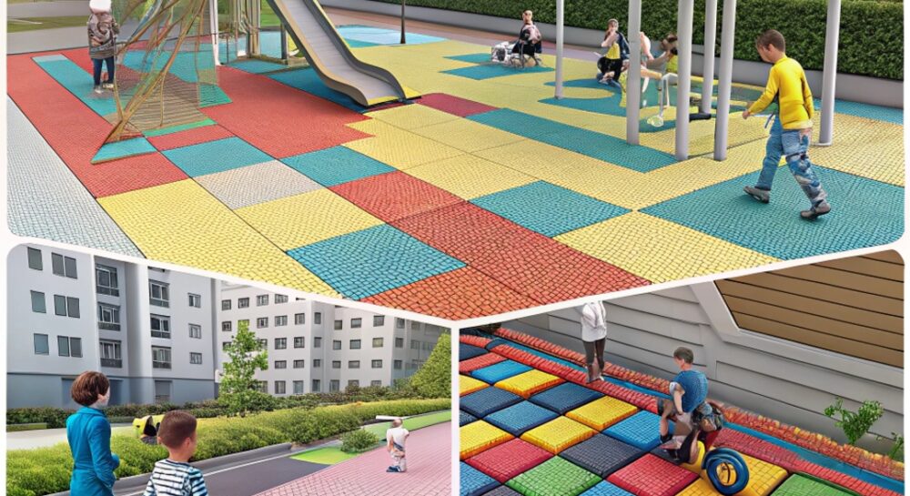 Интересный факт: В спортивных зонах часто комбинируют резиновую плитку с полиуретановыми вставками для дополнительной амортизации и улучшения дизайна площадок.