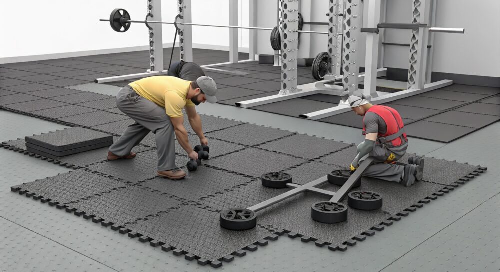 - Тренажёрный зал «PowerFit» – установил покрытие под зоны свободных весов; благодаря поглощению энергии спортсмены отмечают снижение нагрузки на суставы.