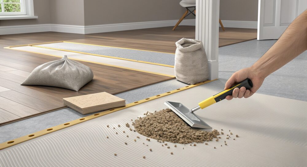 Перед укладкой ламината с резиновой крошкой основание должно быть идеально подготовлено. Вот шаги, которые обеспечат долговечность всего покрытия: