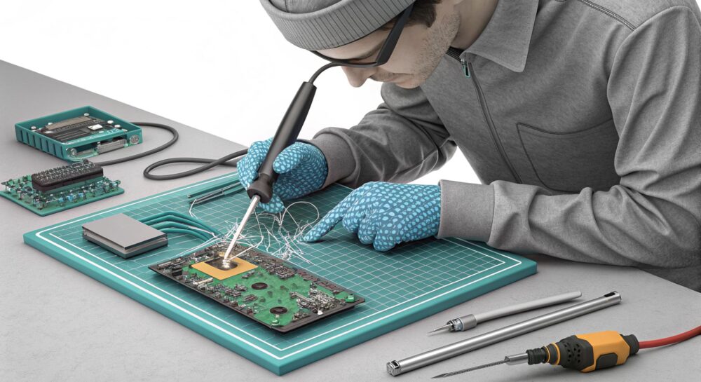 При пайке электронных компонентов температура достигает критических значений, что требует надежной защиты рабочего стола от теплового воздействия.