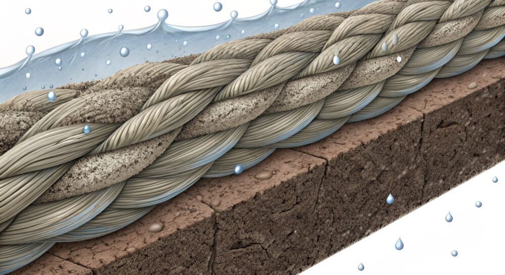 Набухшие волокна могут изменять геометрию плетения троса, что приводит к неравномерному распределению нагрузки между отдельными нитями.