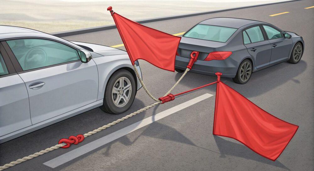 Красные флажки на буксировочном тросе по ПДД 2025. Узнайте, когда они обязательны, размер и цвет, чтобы избежать штрафов. Безопасная буксировка.