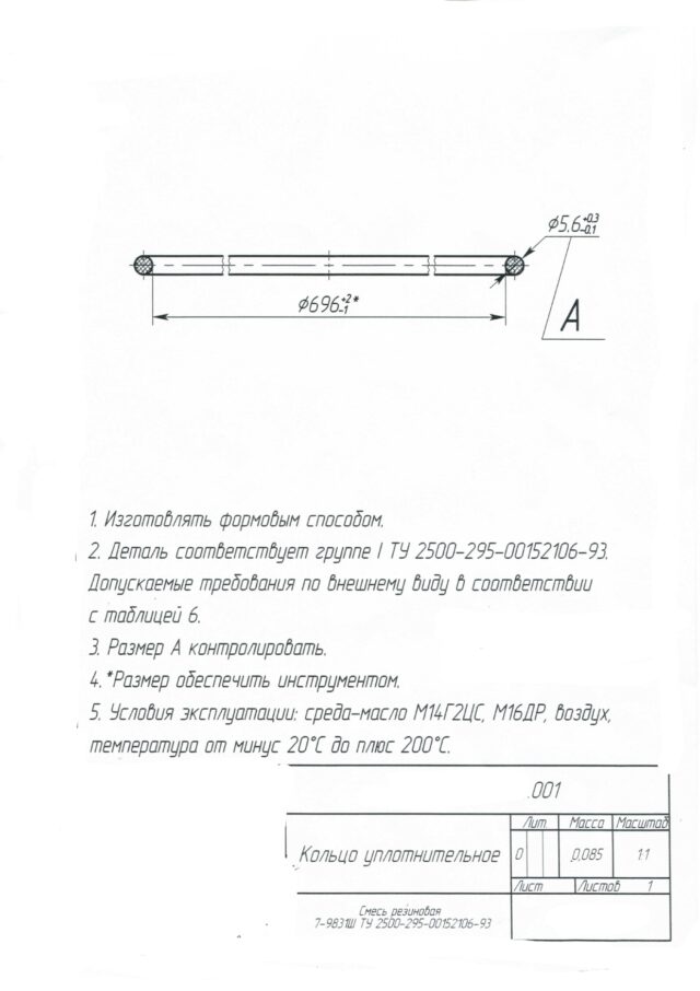 Надежное уплотнительное кольцо по чертежу 001 от «РезиноМир» в Санкт-Петербурге – это гарантия герметичности и долговечности ваших систем. Мы предлагаем высококачественные резинотехнические изделия, изготовленные из специализированной резиновой смеси 7-9831Ш по ТУ 2500-295-00152106-93, разработанные для самых ответственных применений.