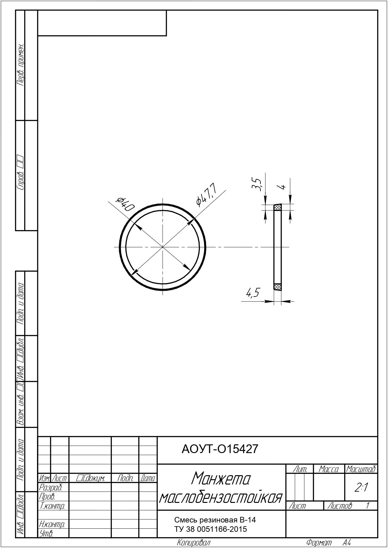 Манжета по чертежу АОУТ-О15427 / Смесь резиновая В-14 ТУ 38 0051166-2015