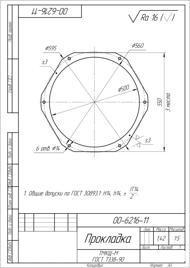 Прокладка 00-6216-11 ТМКЩ-М ГОСТ 7338-90 от «РезиноМир» – надежное решение для ваших производственных задач в Санкт-Петербурге. Эта прокладка, изготовленная по ГОСТ 7338-90, обеспечивает герметичность и защиту в самых ответственных узлах.